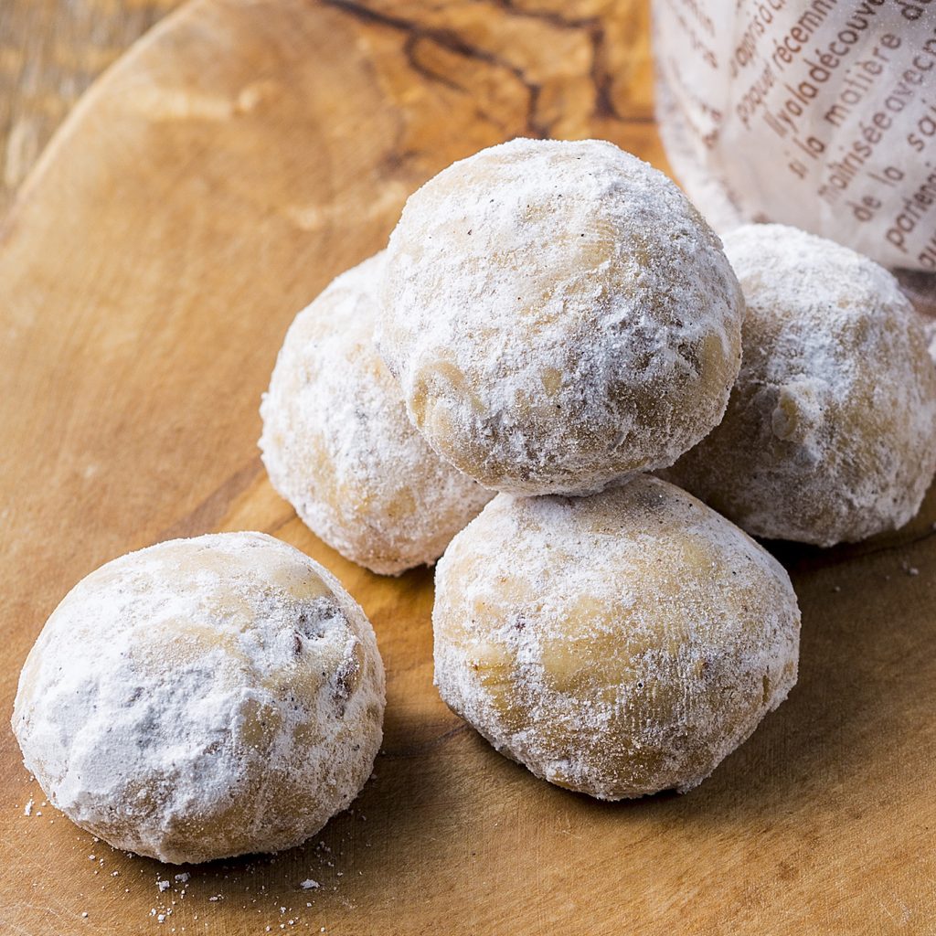 『雪玉』という意味のフランス菓子。卵を使わず、アーモンド、くるみ、ココナッツを練り込んだ生地は、お口に入れた瞬間、ほろりと崩れるようなやさしいくちどけ。粉糖の甘さの後に、ほんのりナッツの香ばしさを感じていただけます。