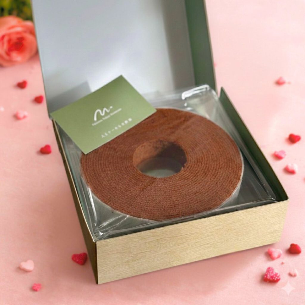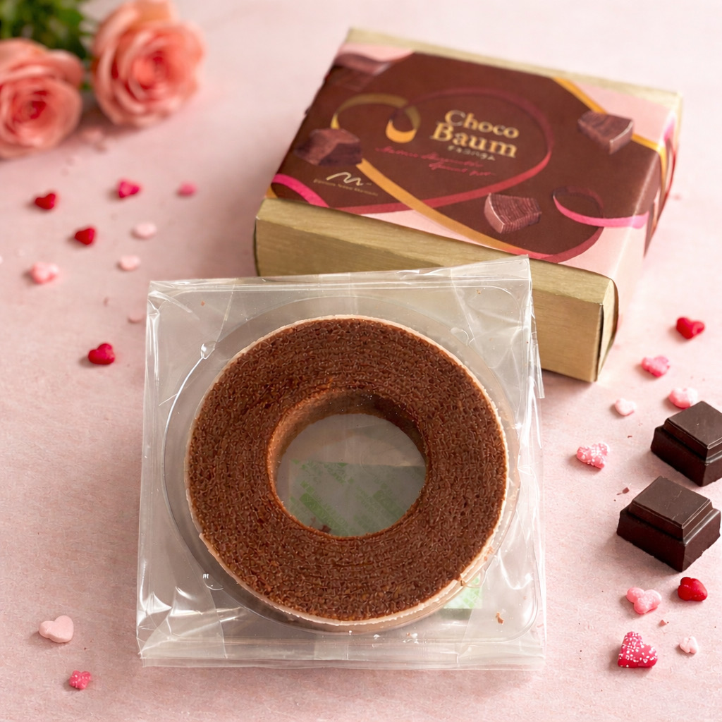 しっとりふんわり食感のバウム生地に、濃厚なチョコレートをたっぷり混ぜ込み、一層一層丁寧に焼き上げました。