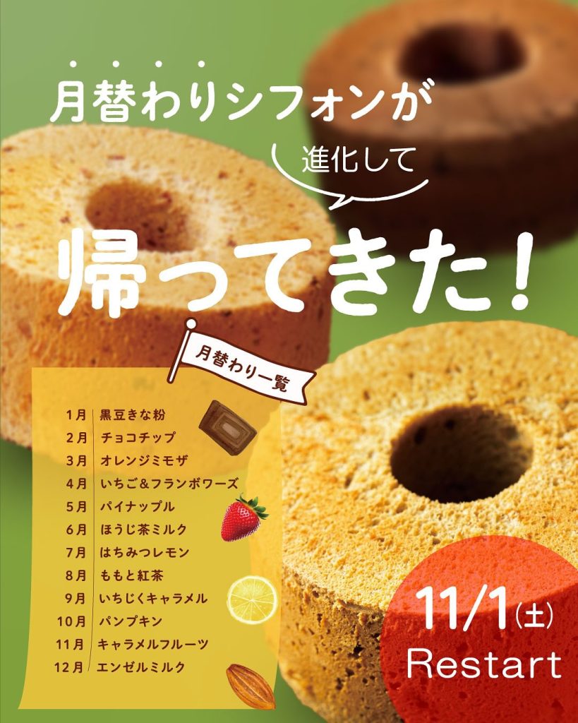 月替わりシフォン&スタンプラリー再開のお知らせ